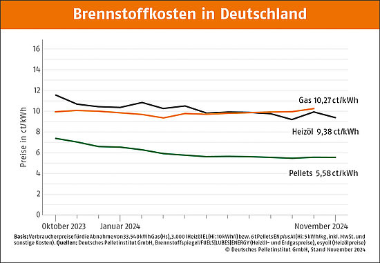 Die Brennstoffkosten einer Pelletheizung liegen im Schnitt deutlich unter denen von Öl und Gas. Trotz Preissteigerungen aufgrund der aktuell hohen Nachfrage gepaart mit hohen Produktionskosten bauen Pellets ihren Preisvorteil im Vergleich zu Erdgas und Erdöl auf über 40 Prozent aus. Mit Pellets sparen Sie Heizkosten, stärken mit dem Brennstoff die heimische Wirtschaft und schonen die Umwelt.